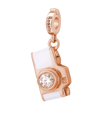 Ciondolo in argento 925‰, placcatura oro rosa, smalto bianco, 1 zircone bianco