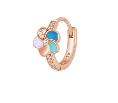 Orecchino singolo cerchietto con fiore in argento 925‰ e placcatura oro rosa, 20 zirconi bianchi, smalti colorati